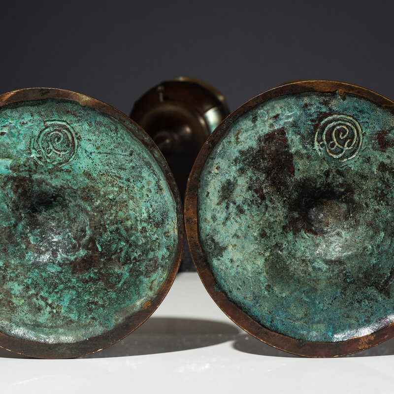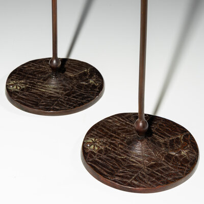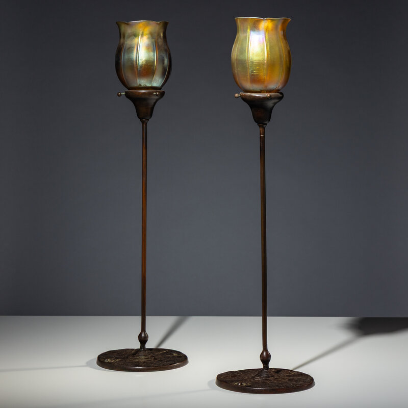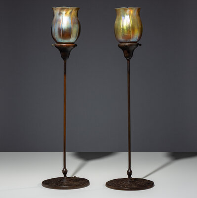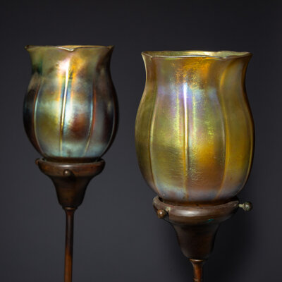 shades etched 'L.C.T. Favrile' and stamped cipher to underside of bronze bases