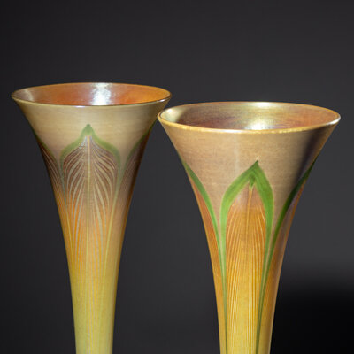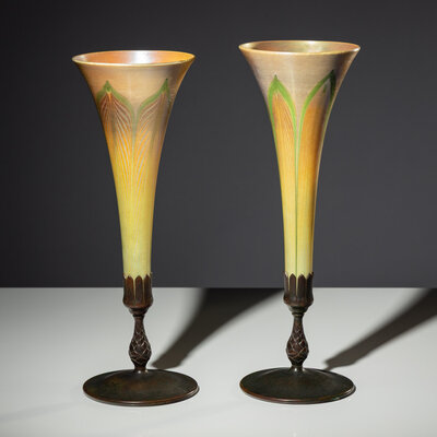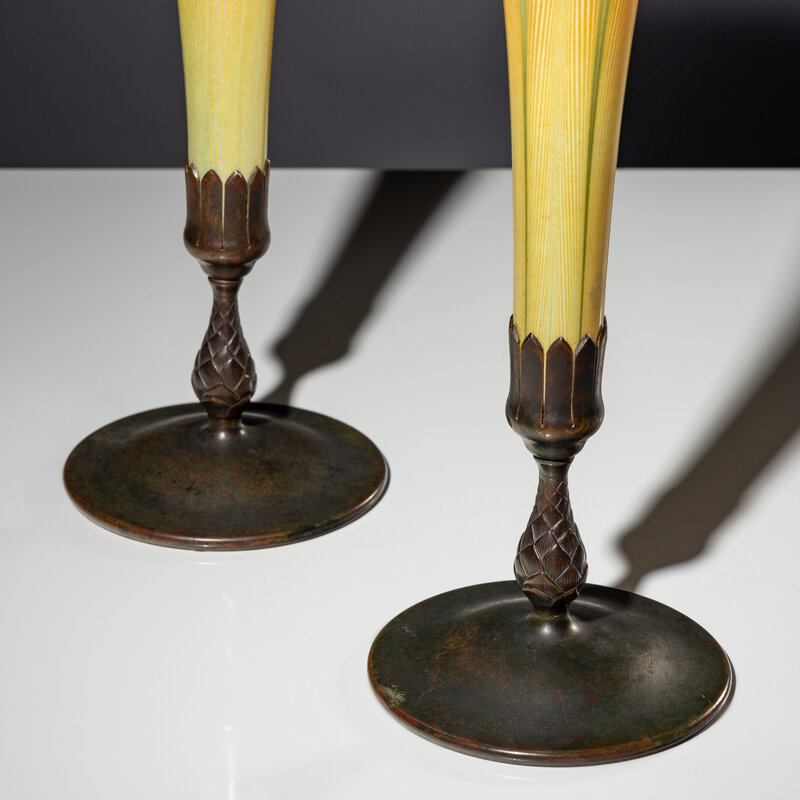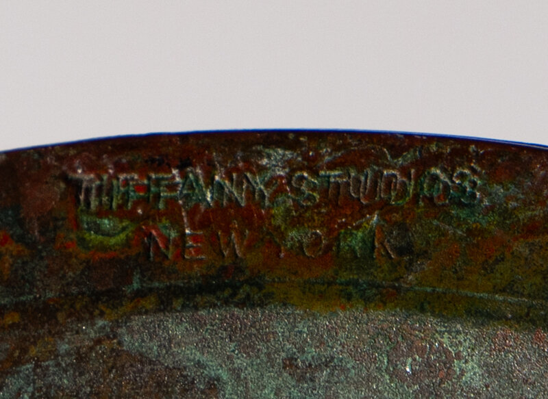 patinated bronze, favrile glass, glass