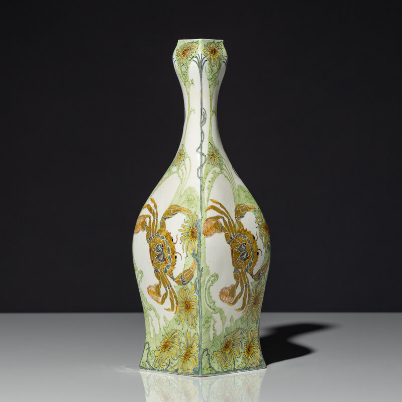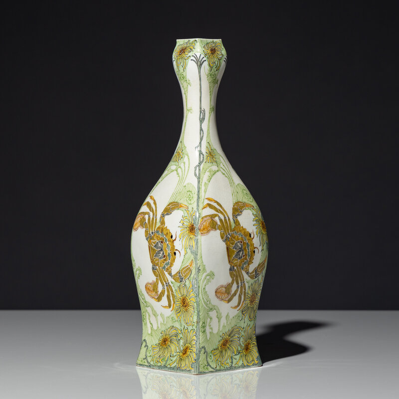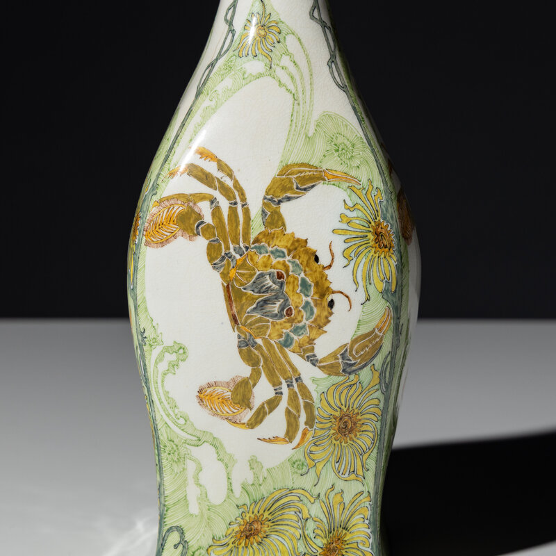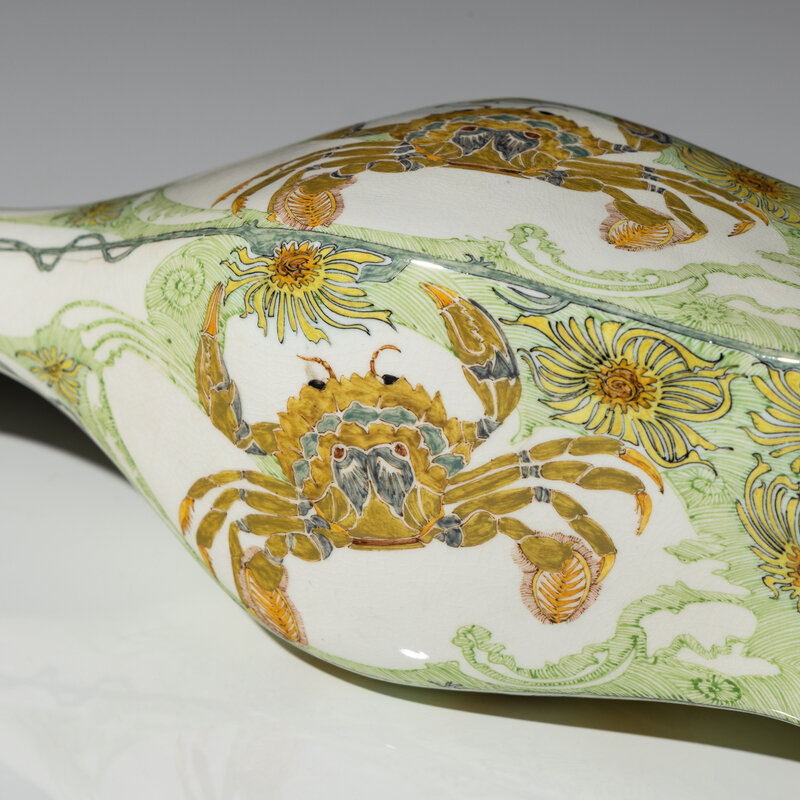 Eggshell porcelain vase with polychrome crab and reef decor, model 90