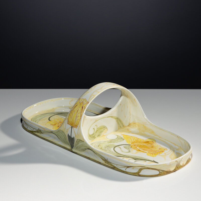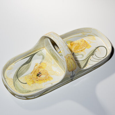 Eggshell porcelain handled tray with polychrome tulip decoration, model no. 210p