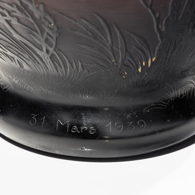 signed in cameo 'Daum Nancy, France' and later etching to foot rim '31 Mars 1939'
