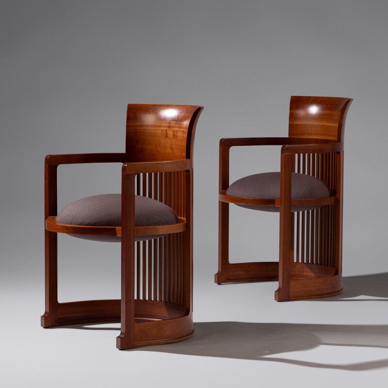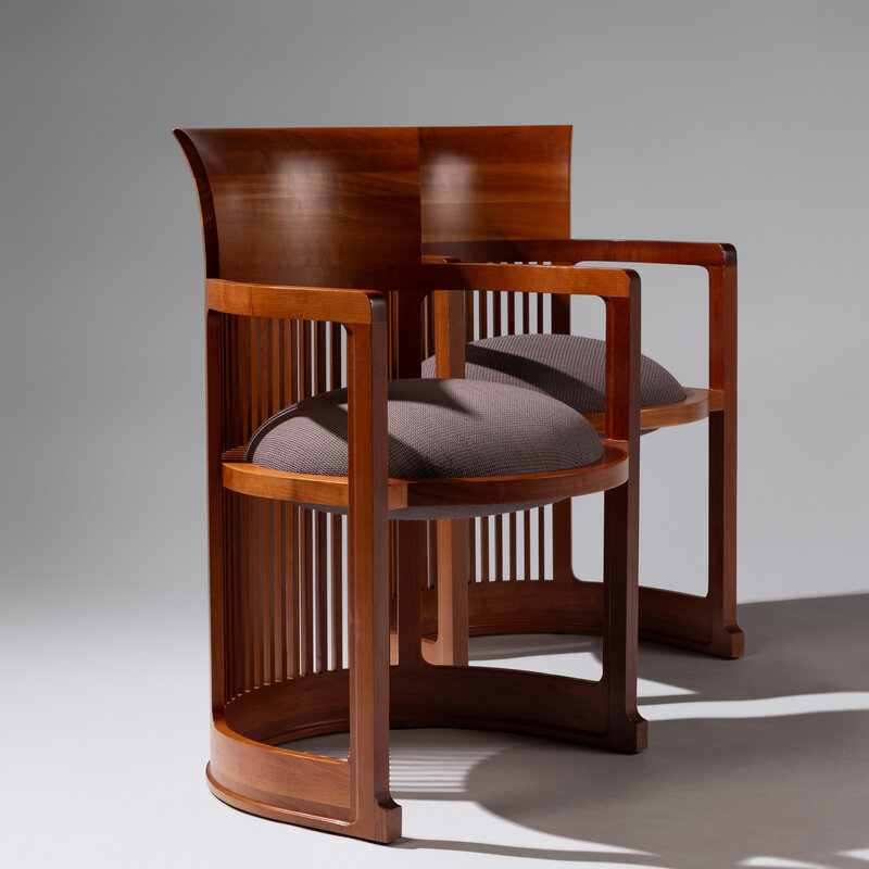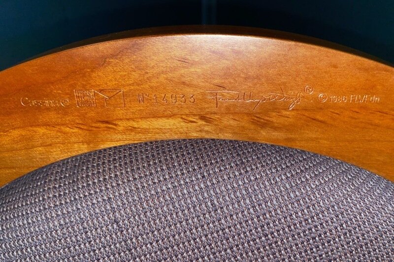 'Cassina' tag to underside of cushion and impressed 'Cassina No. 14933 Frank Lloyd Wright copyright 1986'