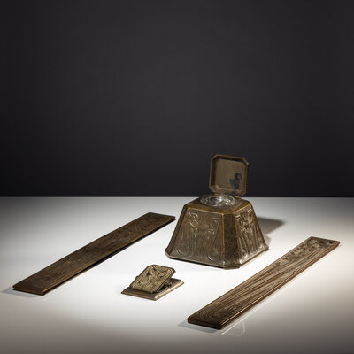 inkwell: 4½ h × 6½ w × 6½ d in (11 × 17 × 17 cm)