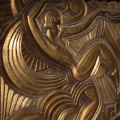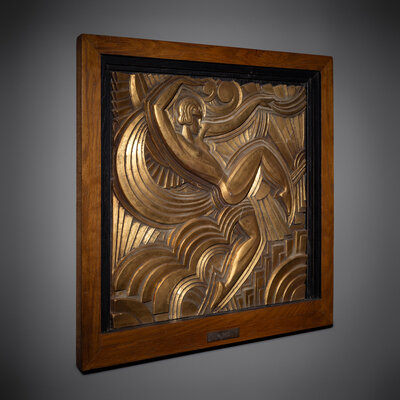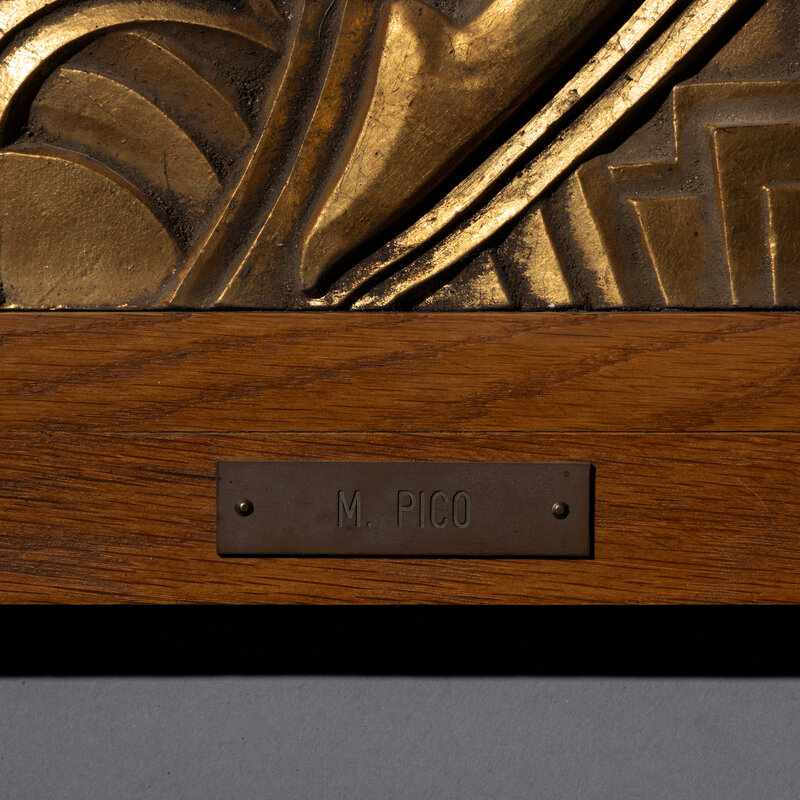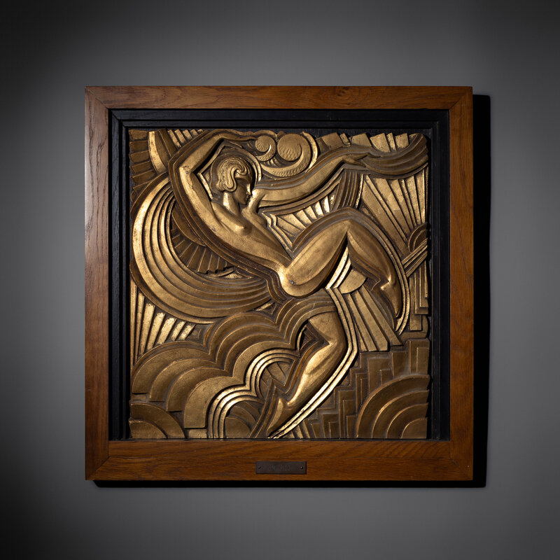 Relief: 19½ × 19½ in; frame: 24½ w × 25 h × 1¼ d in.