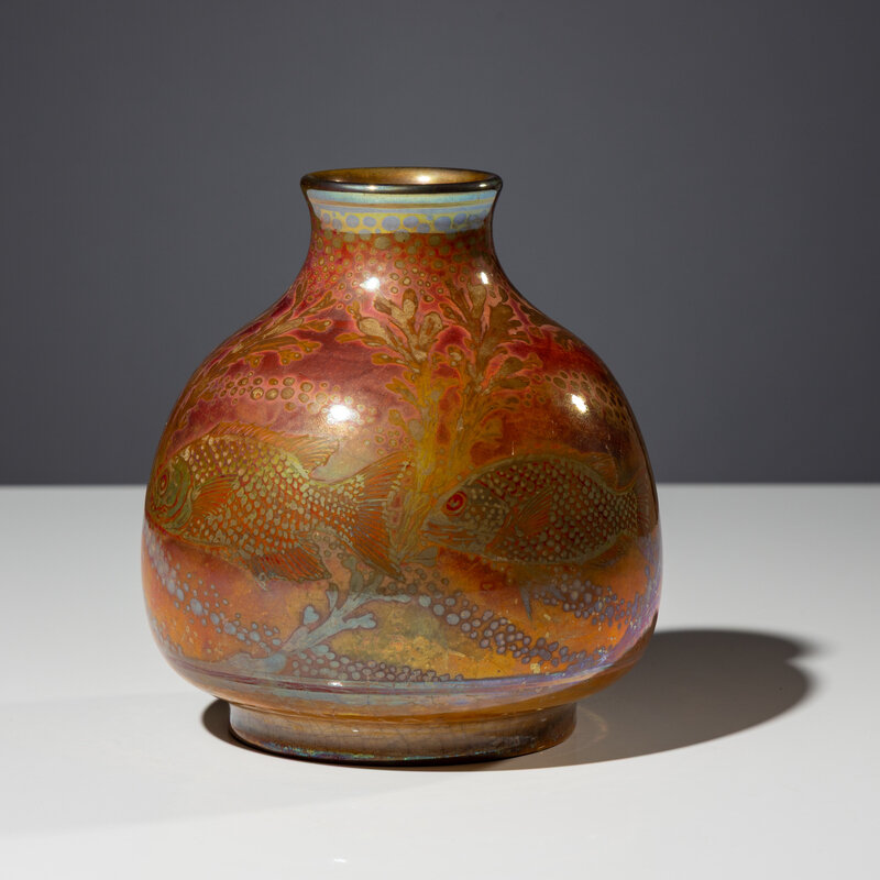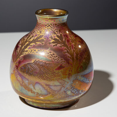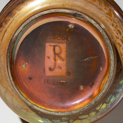 impressed factory mark "3354 Lancastrian England" and painted artist's mark "R" on underside.