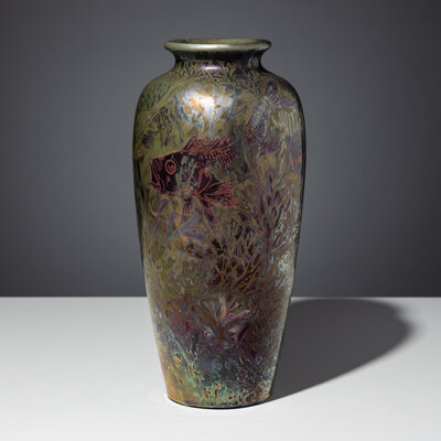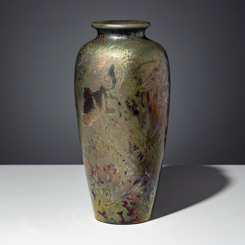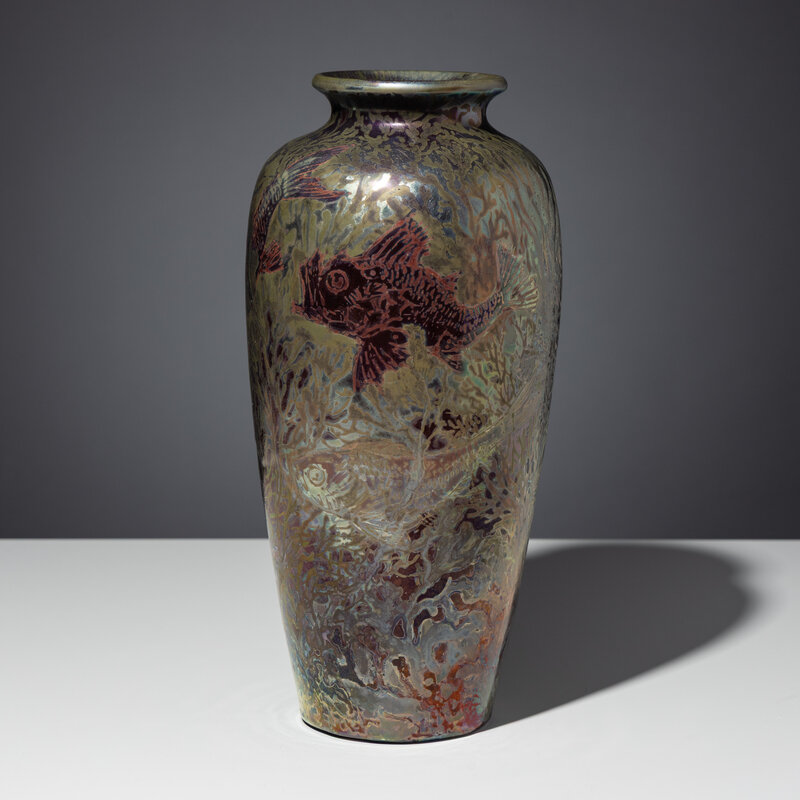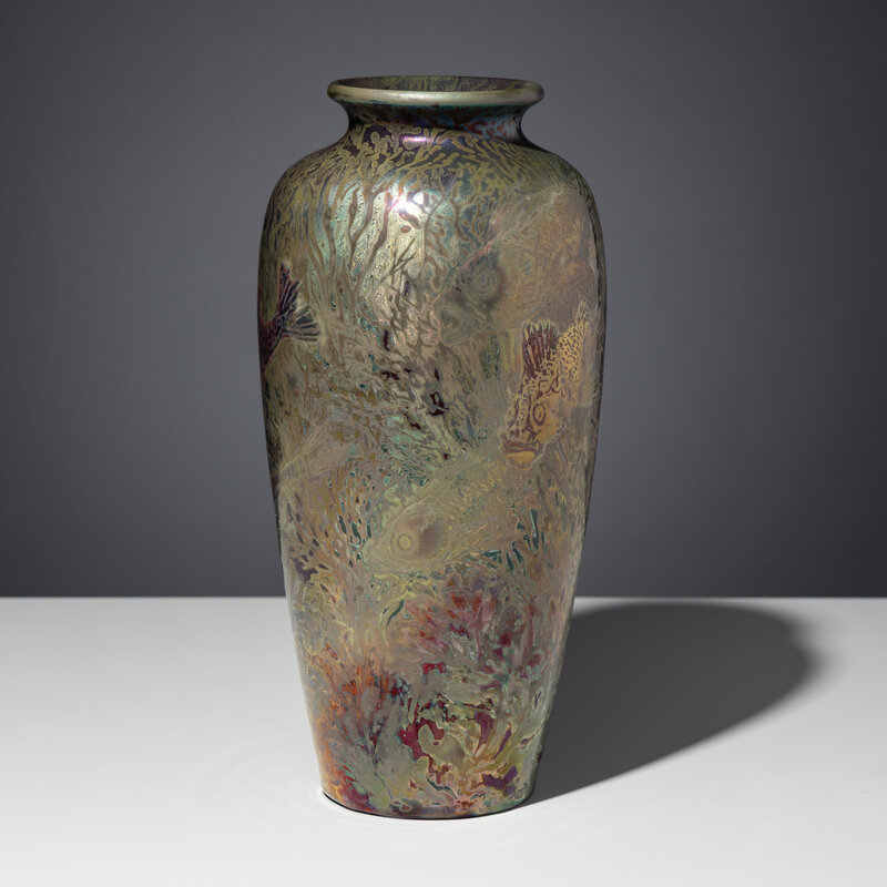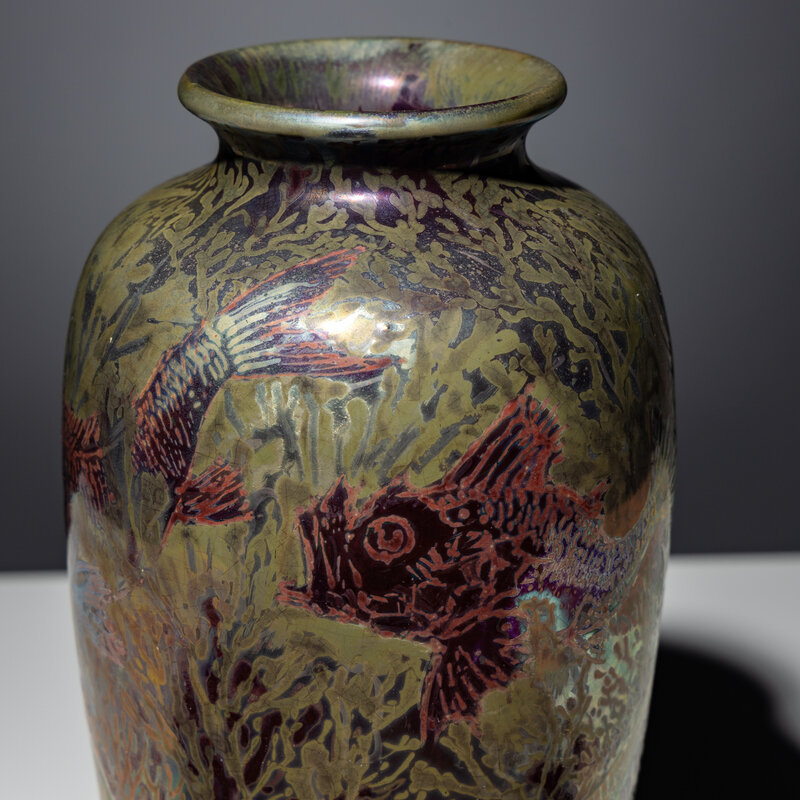 This marine scene is signed “M.A”, presumably the initials of painter Marius Alexandre who moved on from Massier to co-found BACS.
