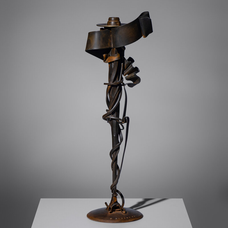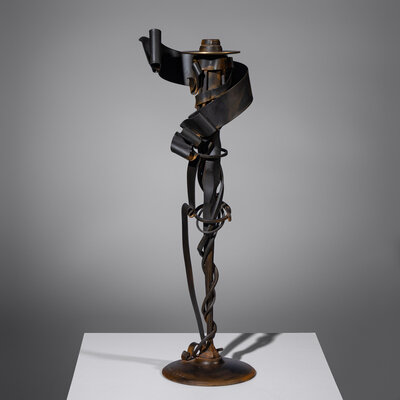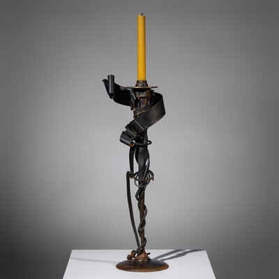forged and fabricated steel with a blackened finish, removable brass bobeches