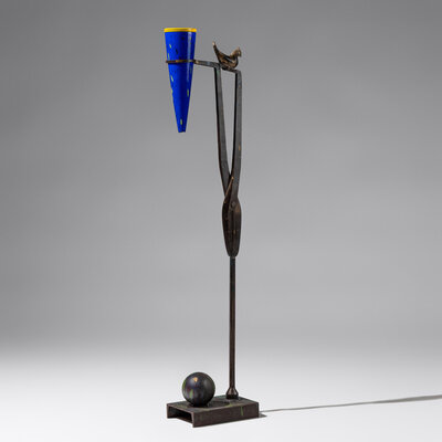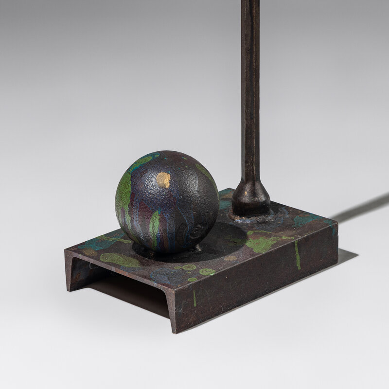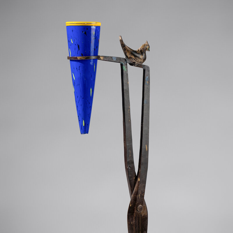 painted cast iron and blown glass