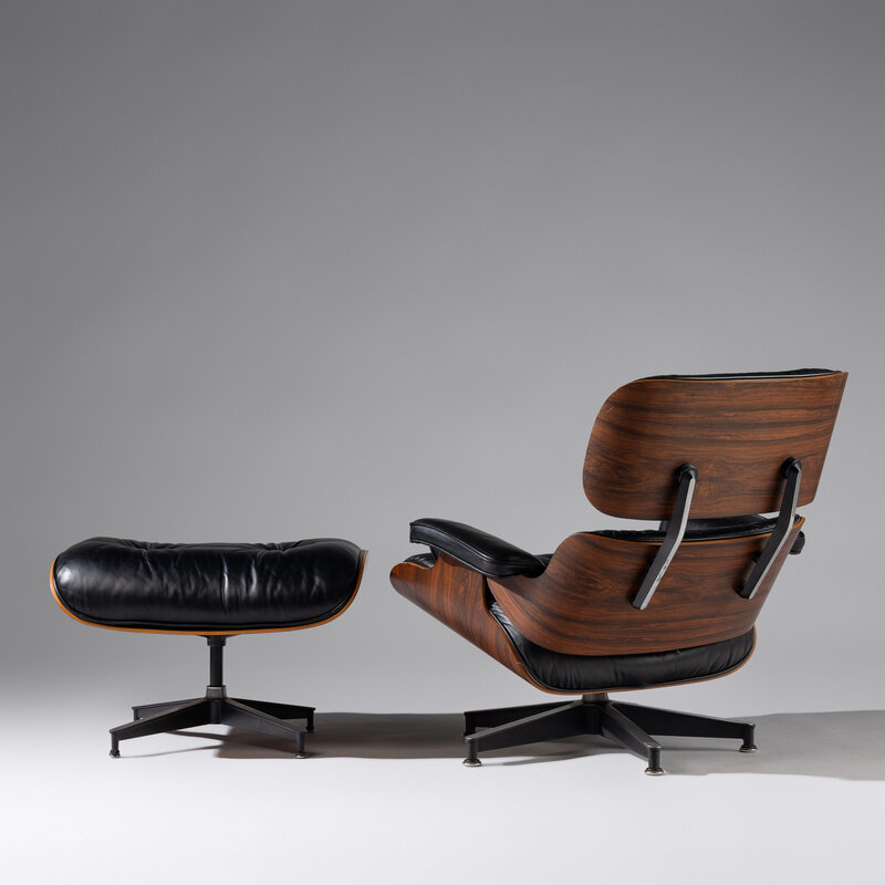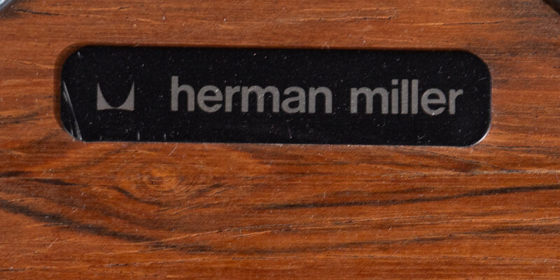 rosewood, leather upholstery, enameled and brushed aluminum, rubber