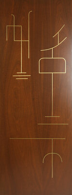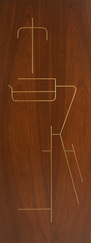 walnut, bronze, grasscloth