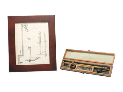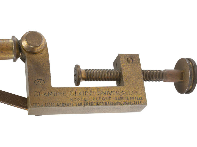 Brass instrument for correct perspective drawing as used by aeronautical and geographic departments of the military, museums, scientists and artists, marked, "Chambre Claire Universelle...Made in France...The A. Lietz Company San Francisco - Oakland - Los Angeles." Housed in original wood case, 1 1/2 x 2 1/2 x 11 1/2 in.