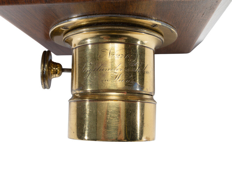 [CAMERAS]. Replica chamfered box sixth plate daguerreotype camera with Voigtlander & Sohn lens.