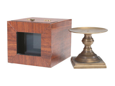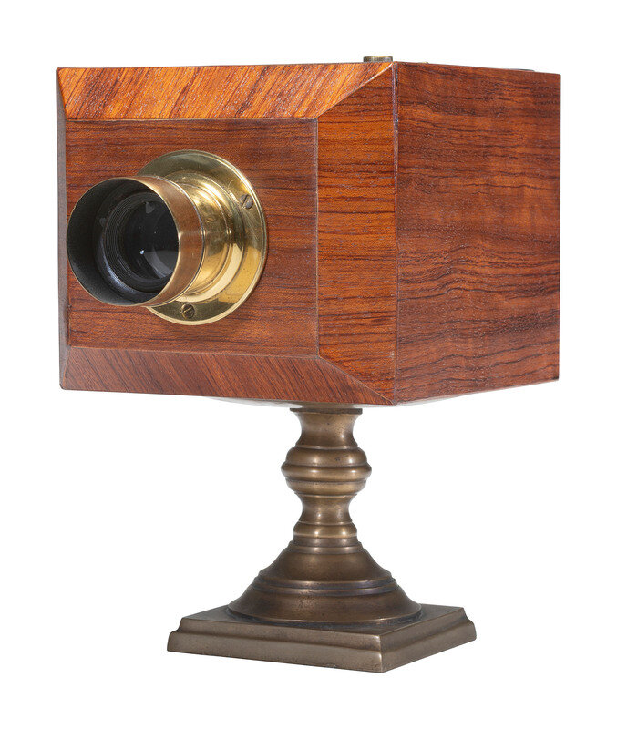 [CAMERAS]. Replica chamfered ninth plate daguerreotype camera with Gasc and Charconnet lens.