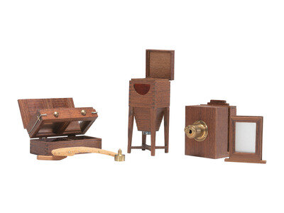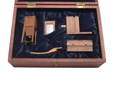 [CAMERAS]. Miniature daguerreotype outfit in custom box by Ake Hultman, 1999.