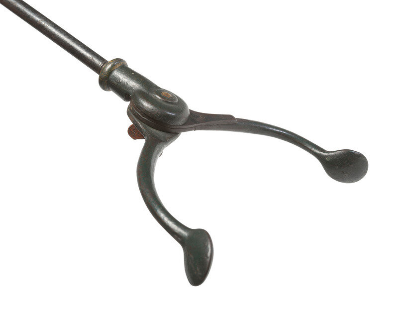 [EARLY PHOTOGRAPHY]. Vintage cast iron photographer's studio head clamp and "unipod."