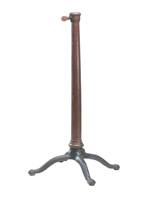 Early wooden "unipod" with cast iron base, approx. 13 in. wide. Height overall 29 in. The "unipod" was utilized to help steady a camera when no tripod was used.