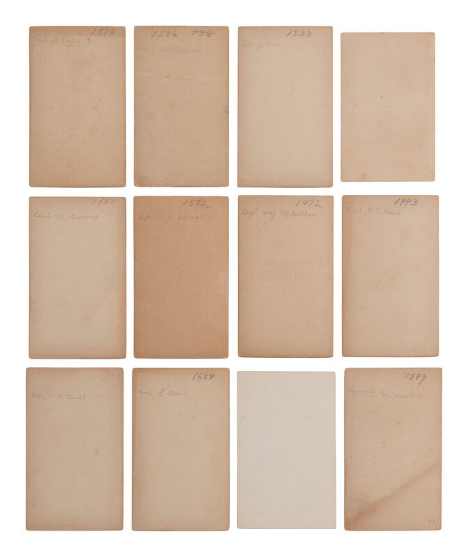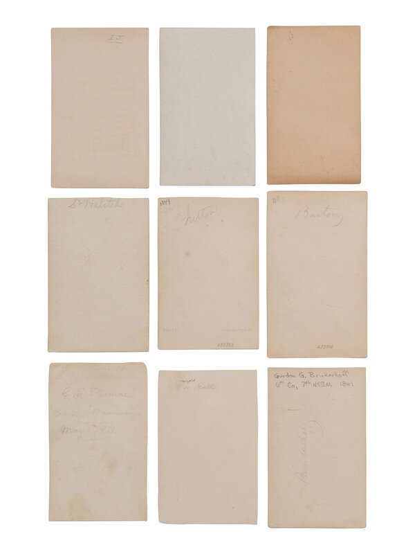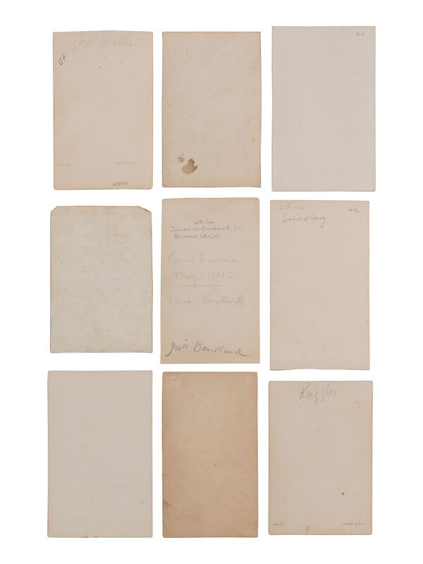 30 CDVs on cardstock mounts showing members of the 7th New York State Militia, many subjects identified. The period prints are affixed to what appear to be later cardstock mounts, which lack a studio imprint.