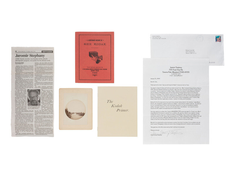 Also included is a copy of The Kodak Primer (1888). -- A Centenary History of The Kodak (1988). -- Kodak photograph on cardstock mount, 5 1/4 x 4 1/4 in. overall.