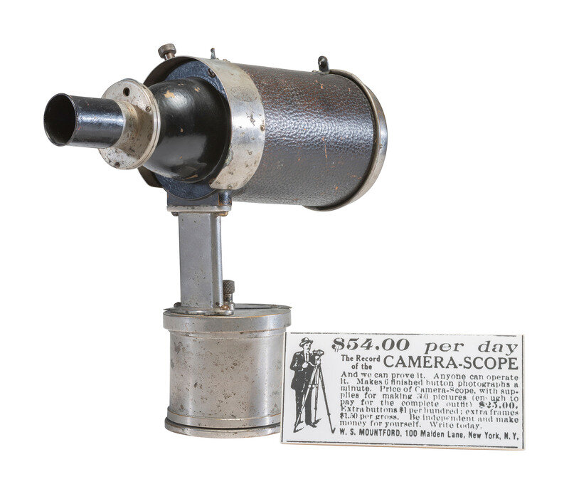 [CAMERAS]. Mountford tintype button "Camerascope" camera.
