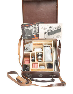 [CAMERAS]. Leica III 35mm camera with accessories and contemporary literature.