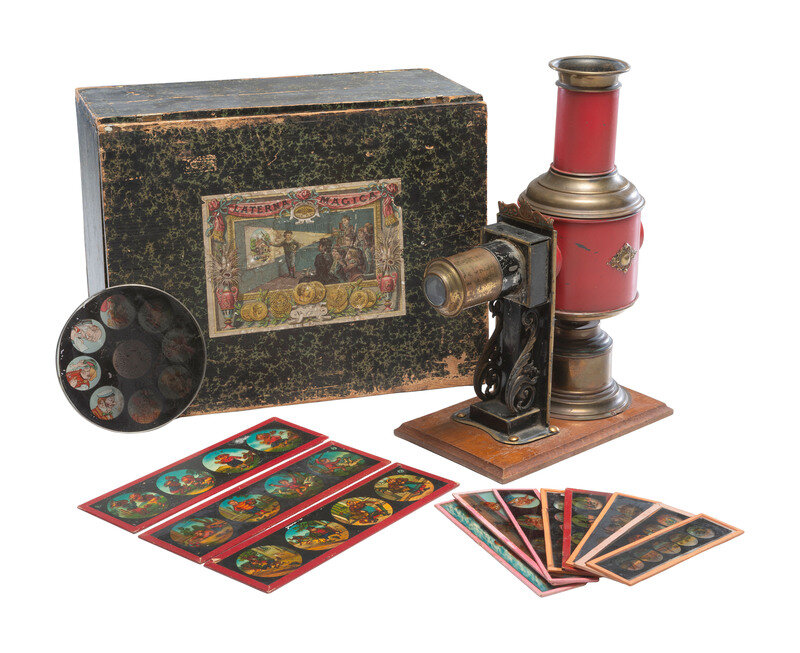 [EARLY PHOTOGRAPHY]. Magic Lantern projector in original box with slides.