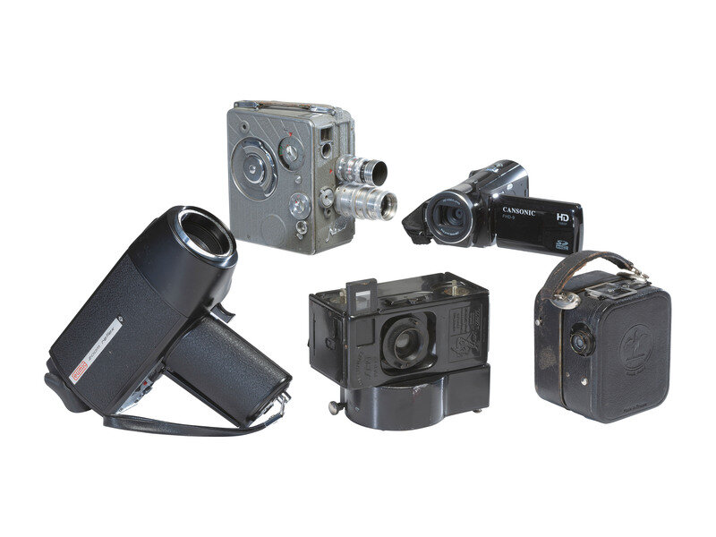 Together, 5 movie cameras with posters and related ephemera.