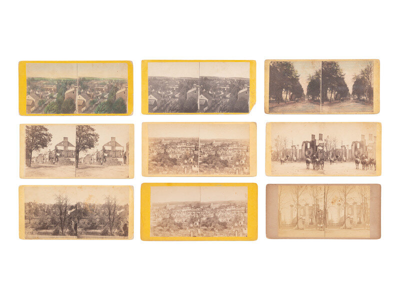 [CIVIL WAR]. A group of 9 views of Chambersburg, PA, incl. ruins and bird's eye views.