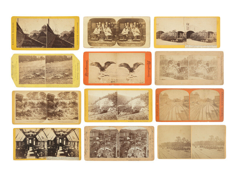 [EARLY PHOTOGRAPHY]. Large selection of stereoviews, incl. Civil War, railroad, landmarks, and landscapes.