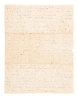 2 pages, 7 1/4 x 9 1/4 in., abundant creasing throughout, some spotting and soiling, wear and a few tears/losses to edges.