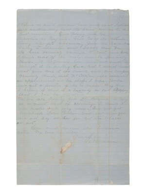 Before closing his letter with discussion of supplies and financial matters, he once again addresses regimental leadership and potential promotions, including hopes for his own: "Col. McGowan has returned an dis thought to be a Brig Genl, yet I don't know what gave rise to the rumor...I hope Clarke will get a position if he is made Brig Genl. I believe if there is a vacancy in our Company that I can be elected."