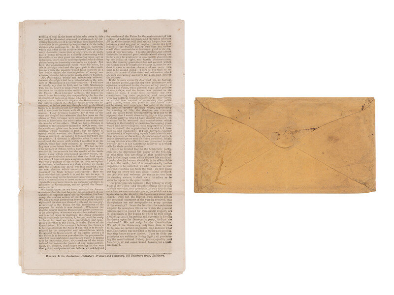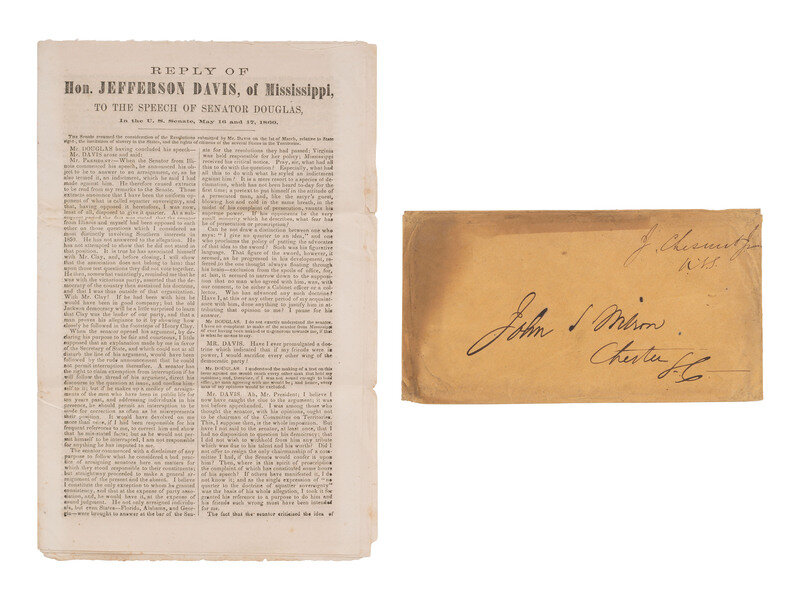 Reply of Hon. Jefferson Davis, of Mississippi, To the Speech of Senator Douglas, In the U. S. Senate, May 16 and 17, 1860. Baltimore, MD: Murphy & Co. Booksellers Publishers Printers and Stationers.
