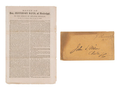 [CIVIL WAR]. Printing of a Jefferson Davis speech sent in a free-franked envelope from CSA Sen. James Chestnut.