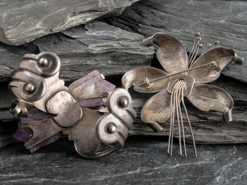 brooch length 3-1/8 inches x width 2-7/8 inches, weight 12.7 dwt.
