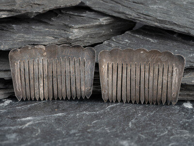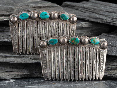Pair of Stamped Silver and Turquoise Hair Combs/Barretes