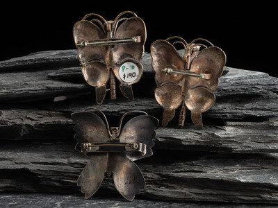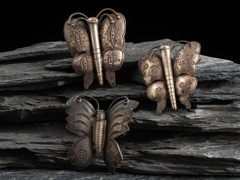 Navajo Stamped Silver Butterfly Pins/Brooches