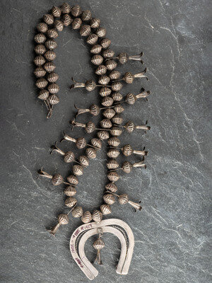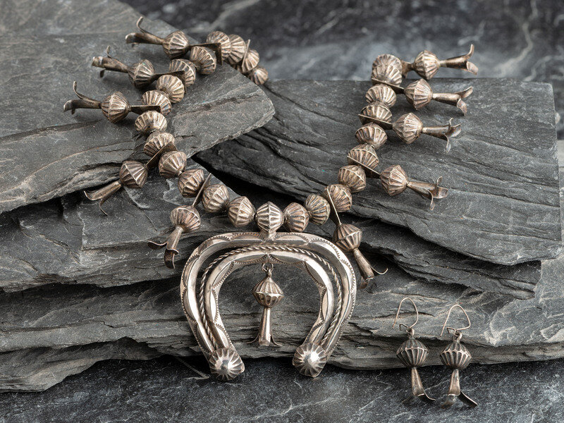 Navajo Silver Squash Blossom Necklace and Hook Earring Set