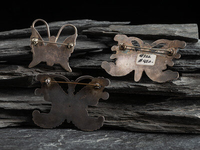 Zuni Silver and Mosaic Inlay Butterfly Pins/Brooches