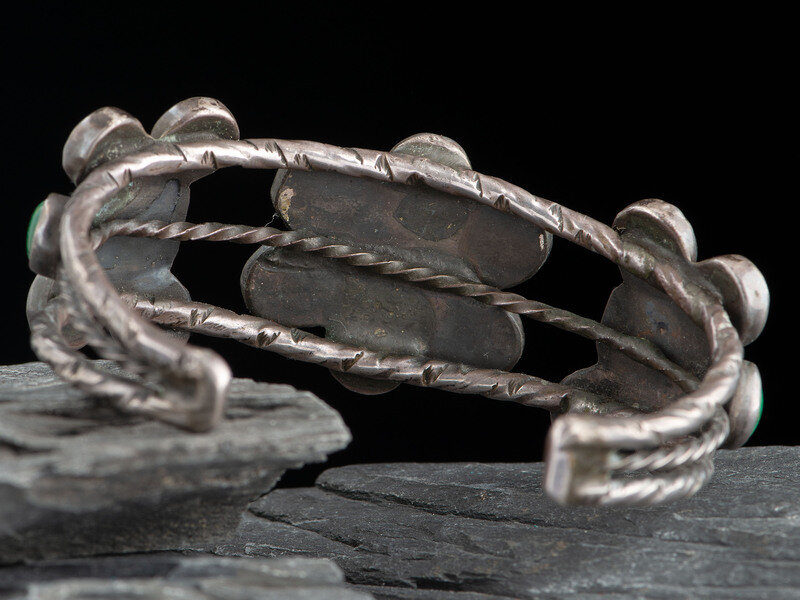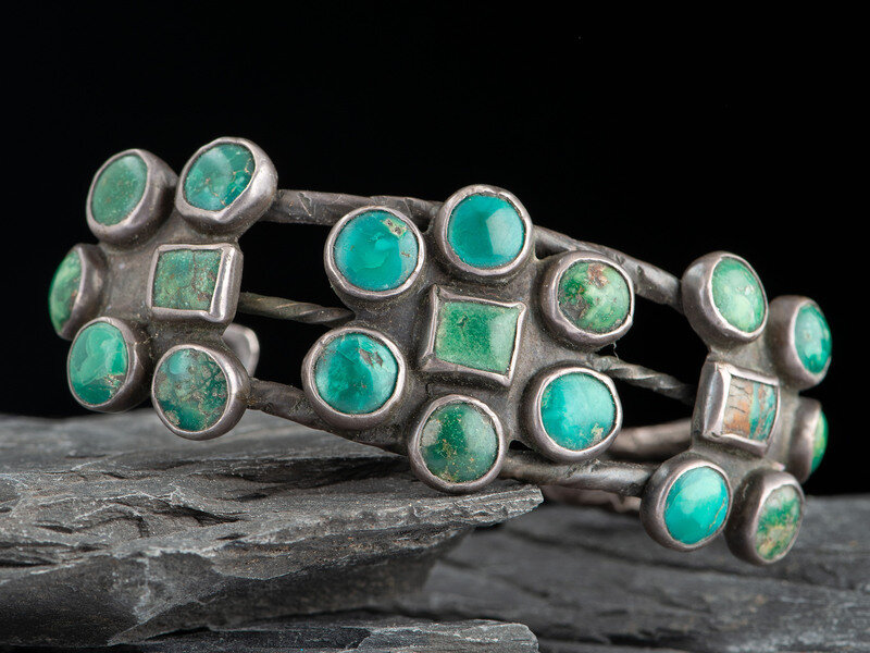 Navajo Silver and Turquoise Cluster Cuff Bracelet