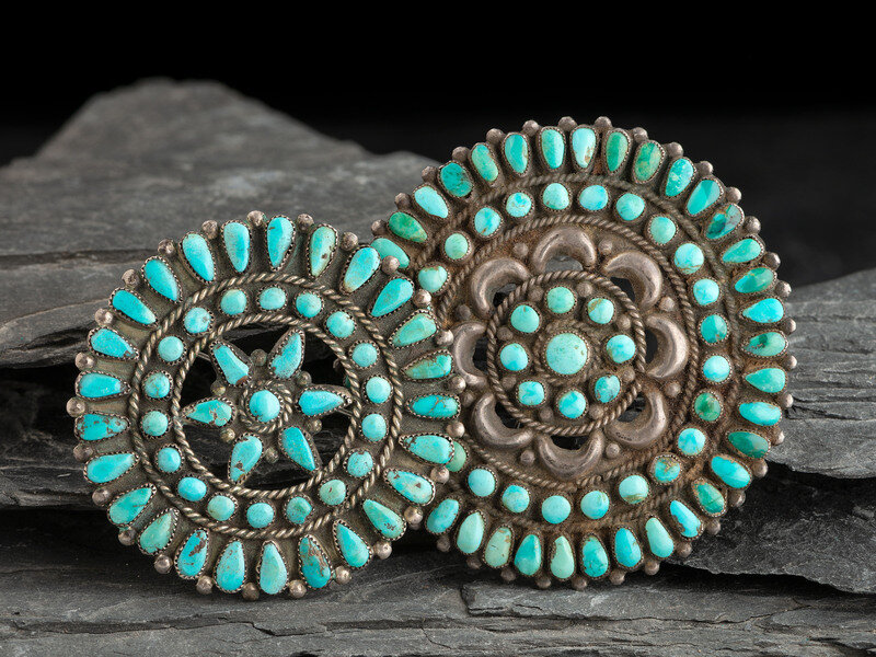 Pair of Zuni Petit Point Turquoise Pins/Brooches