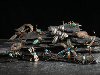 Collection of Navajo and Southwestern-style Silver Bugs and Other Critters