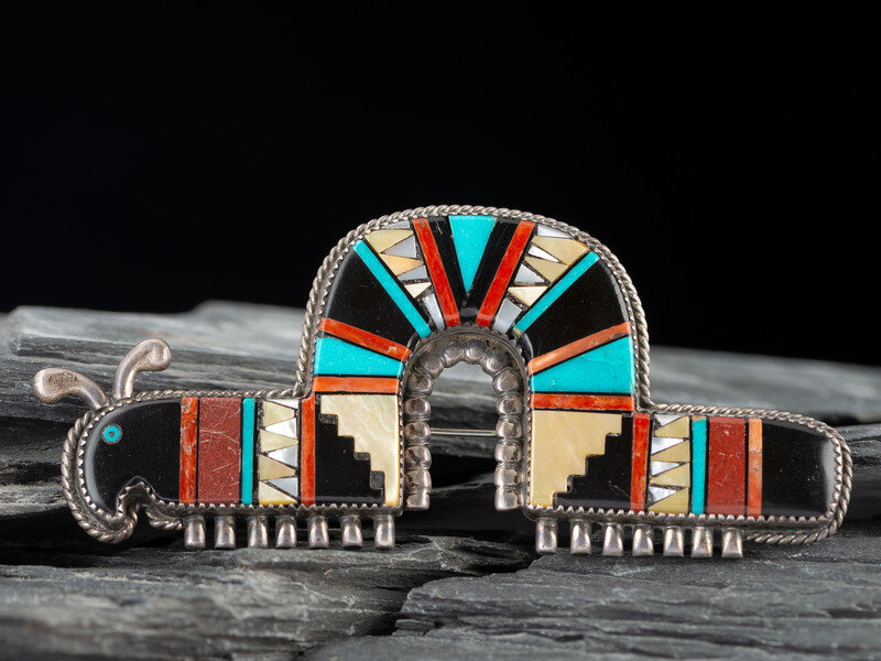 Zuni Silver and Mosaic Inlay Catepillar Pin/Pendant