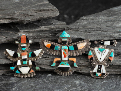 Zuni Mosaic Inlay Knifewing and Thunderbird Pins/Brooches