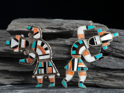 Zuni Mosaic Inlay Rainbow Man Pin and Pendant