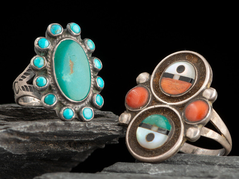 a Zuni inlay ring; signed ZME ZUNI for Mary Ann and Zeno Edaakie (20th century)