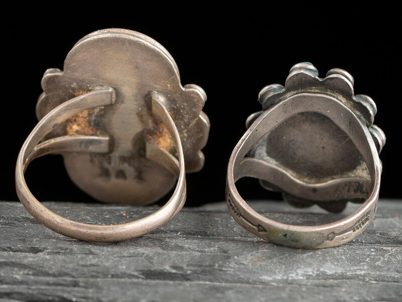a Navajo stamped split shank ring set with turquoise clusters; not marked