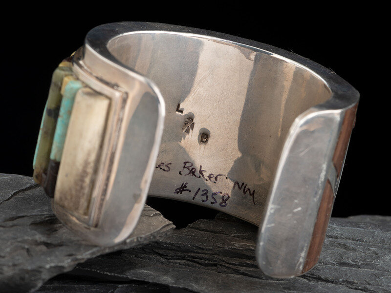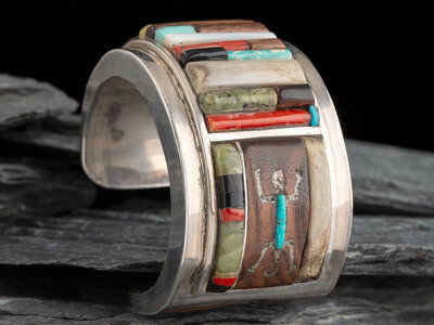 Southwestern-style Wide Silver and Cobblestone Inlay Cuff Bracelet