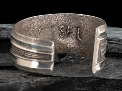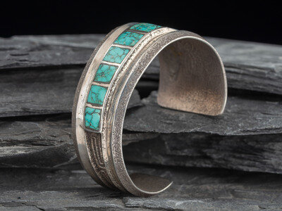 Tapered Tufa Cast Silver Cuff Bracelet, with Turquoise