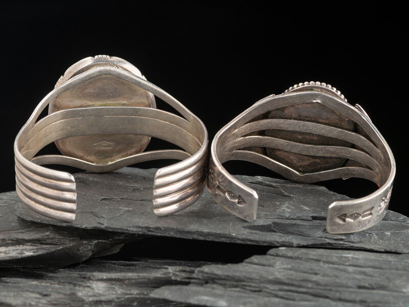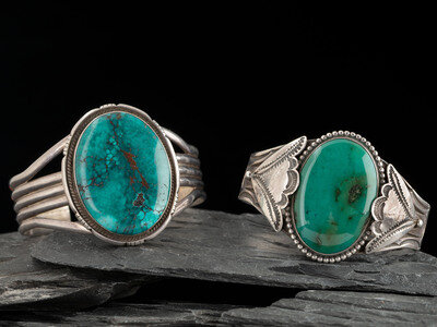 lastly, a split shank example with simple turquoise setting; marked with a broken arrow hallmark DB STERLING
