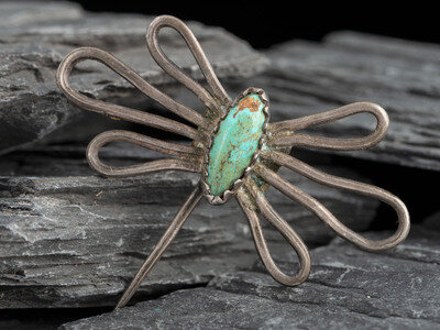 Early Navajo Ingot and Turquoise Butterfly Manta Pin
