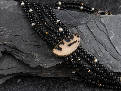 necklace length 33-1/2 inches, drop length 16-3/4 inches, weight 172.2 dwt.